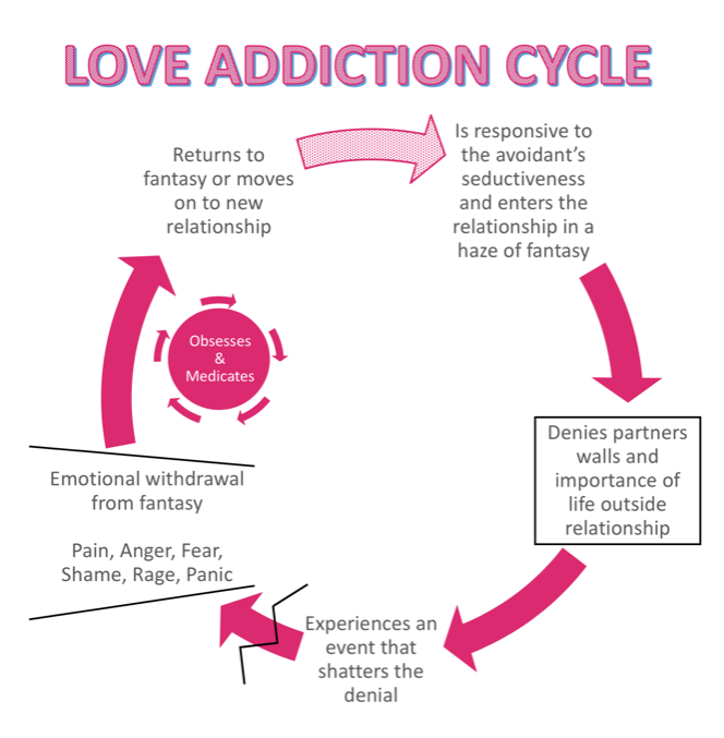 For context, love addicts who are anxious tend to be attracted to anxious avoiders and vice versa.